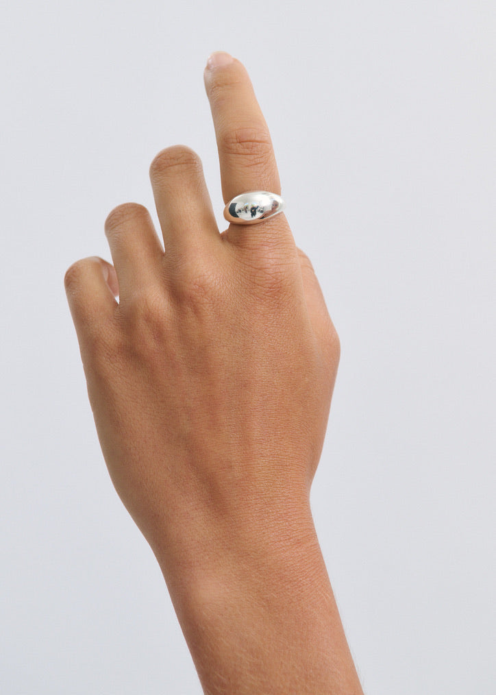 Crafted from premium sterling silver, the delicate domed design offers a modern yet timeless aesthetic. The expandable band ensures a comfortable fit for most wearers.